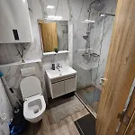 Geniet van het comfort van een badkamer in Apartman Zaxtef Wellness&Spa U Ceni, dat met een haardroger, handdoeken en slippers is uitgerust. Daarnaast vindt u er een apart toilet en een douche.
